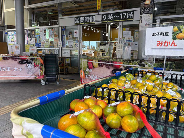 日本遺産「竹内街道」の沿道にある道の駅。太子町産の新鮮なフルーツや野菜、お土産がならぶ。周辺の歴史散策にも便利で、季節には人気のシャインマスカットやミカンを求める人が多く訪れます。